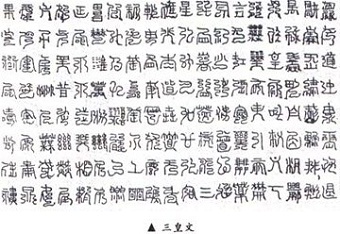 又称《三皇内文》,即《天皇文》、《地皇文》、《人皇文》之合称。乃道士入山用以劾召鬼神,制御百邪,以免祸害之咒,并载有《太清黄神越章秘印》,以及《越章咒》、《印章咒》、《杀鬼咒》、《勃瘟咒》等。